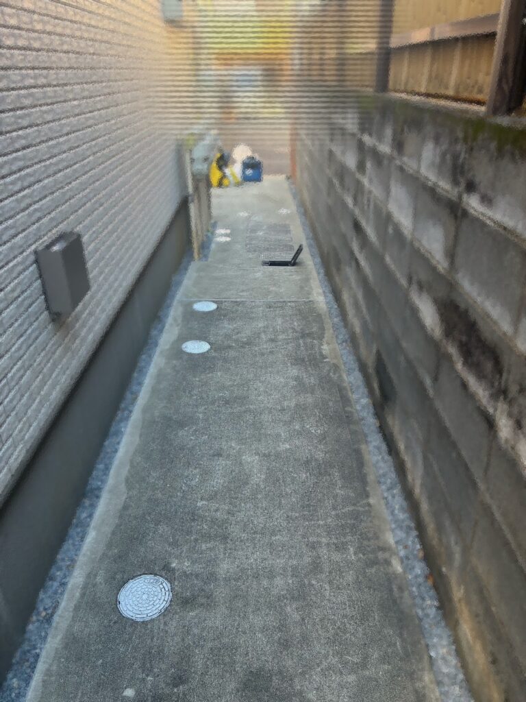 今回のご依頼は、マンション共用部の高圧洗浄作業でした。対象箇所はエントランスの通路と、自転車置き場へ続く側道の2箇所。一見すると「そこまで汚れていないかな?」という印象でしたが、近づいてみると別の問題が待ち受けていました。